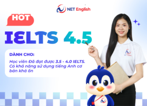 Khóa IELTS 4.5 tại NET English là bước đệm giúp bạn chuyển sang luyện thi chuyên sâu, với lộ trình cá nhân hóa giúp tăng band ổn định và làm quen vững với dạng bài IELTS.